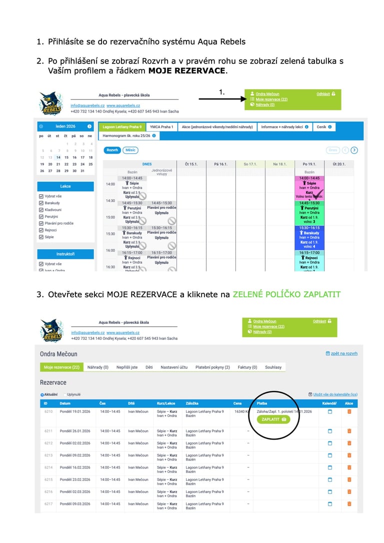 2. Manuál k přihlášení do kurzů přes rezervační systém