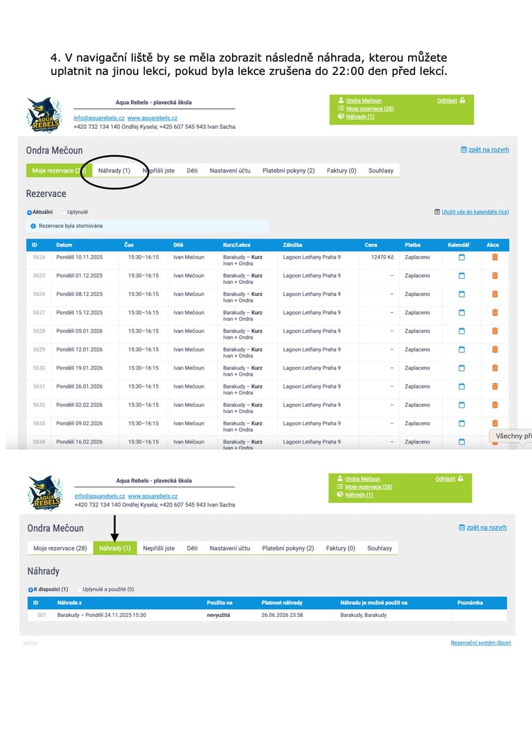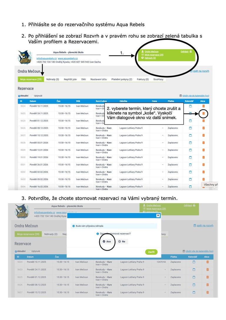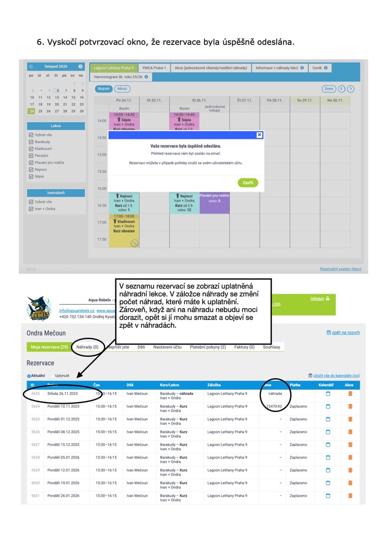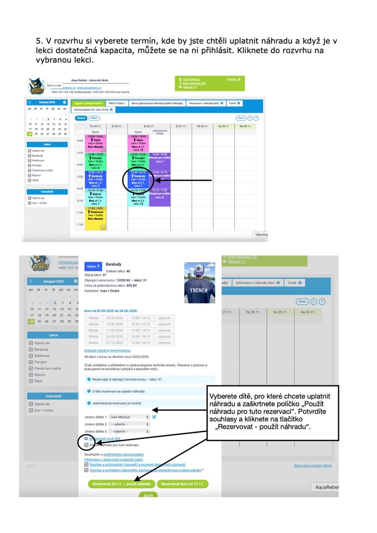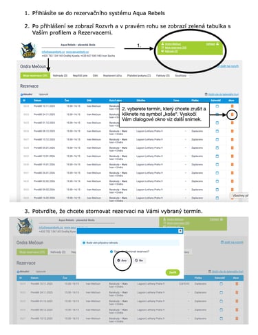 Návody k rezervačnímu systému Aqua Rebels