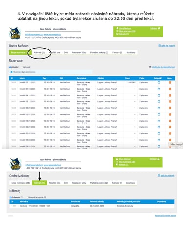 3. Manuál k omluvení lekce a uplatnění náhrady