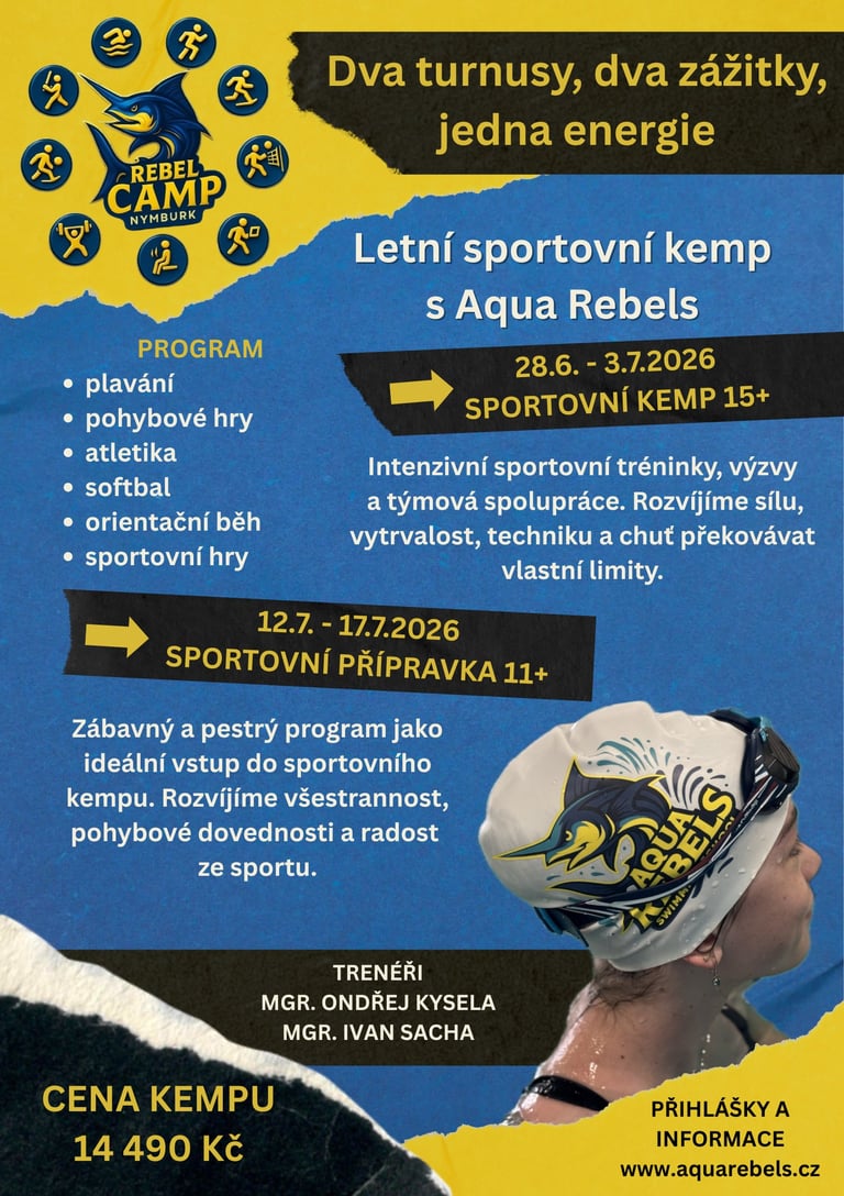 Naše plavecká škola nezůstává jen u plavání! Na sportovním kempu v Nymburce čeká děti týden plný pohybu, zábavy a nových zážitků.
